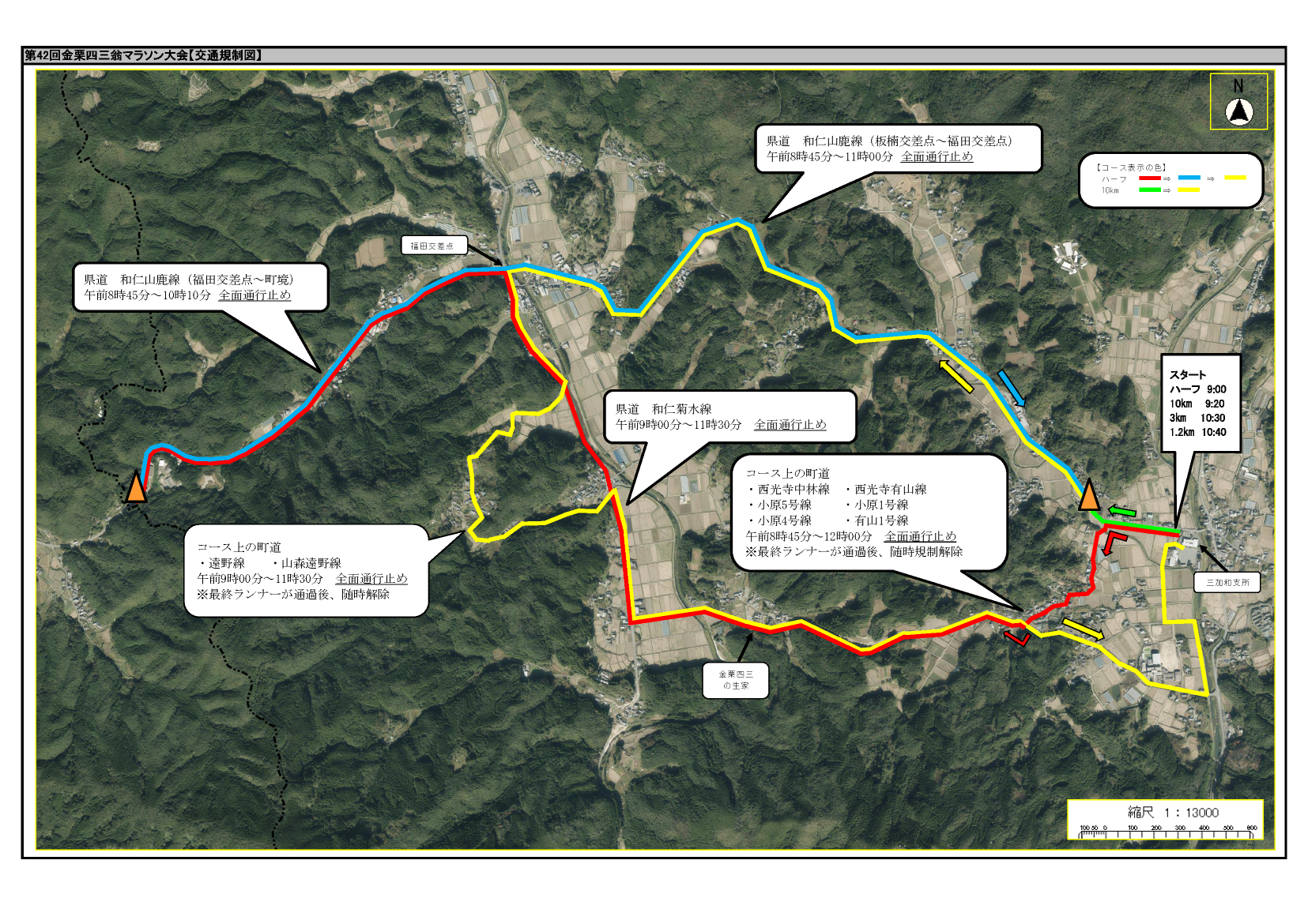 ランナー及び来場者の皆さまへ、第42回金栗四三翁マラソン大会の開催に伴い、コース周辺の交通規制を行います。